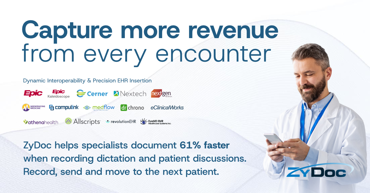 ZyDoc provides medical transcription and documentation solutions that improve efficiency, accuracy, and revenue performance. The platform integrates with leading EHR systems and supports a wide range of specialties including ophthalmology.